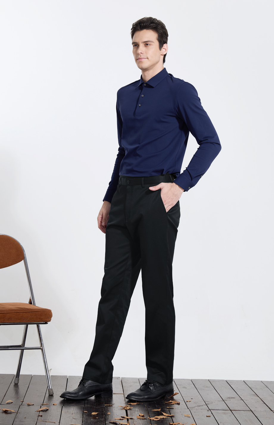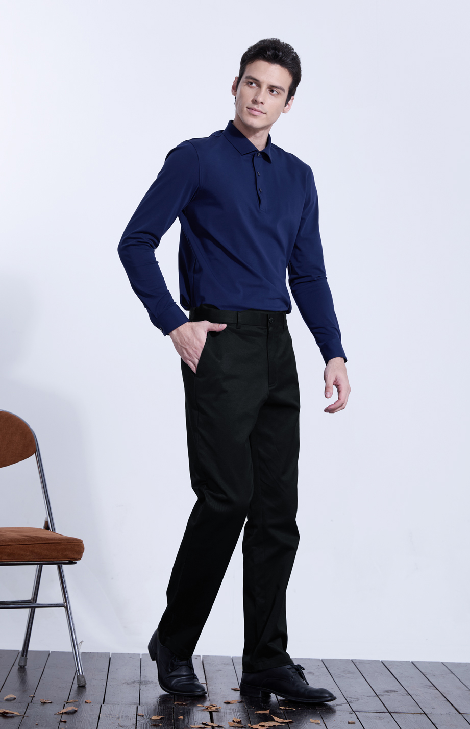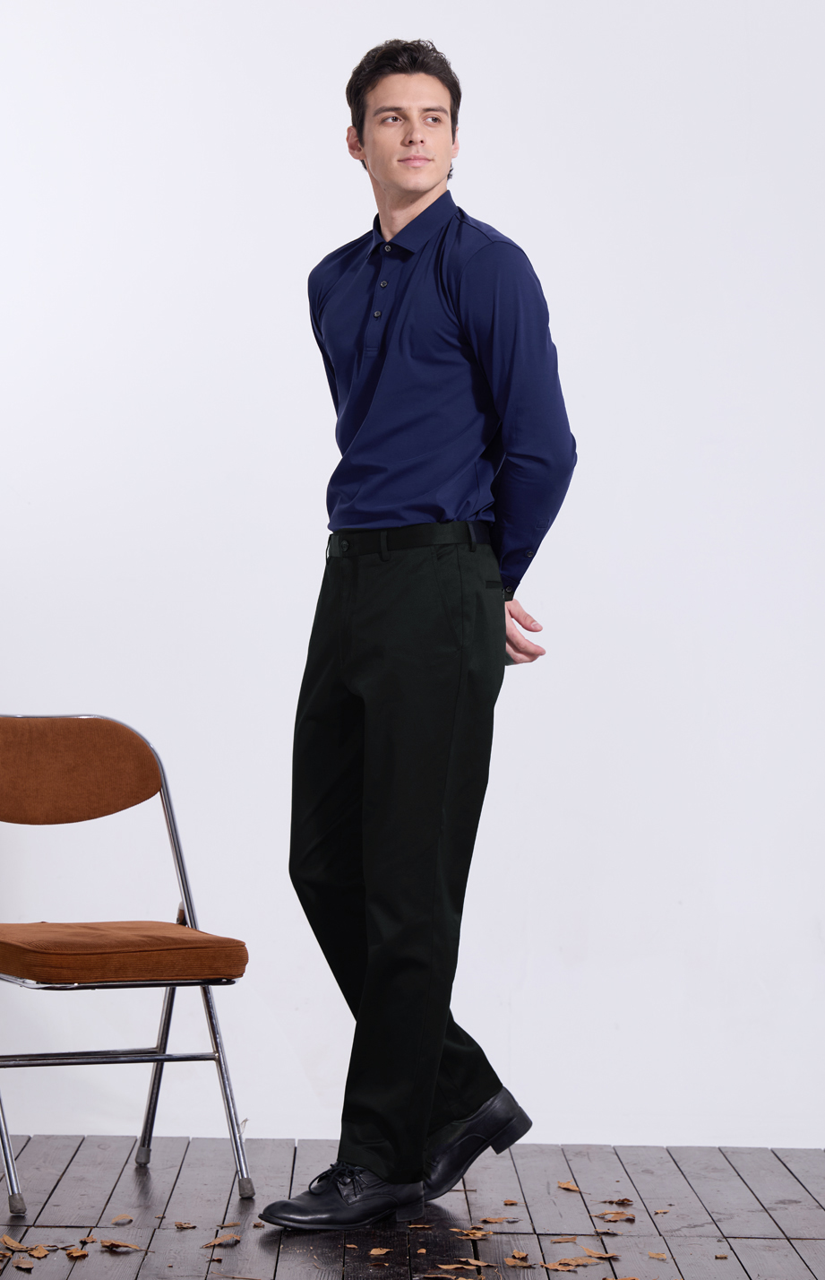定制休闲裤-深蓝色76.5%棉莫代尔粘胶混纺四季穿微弹抗皱秋冬休闲裤