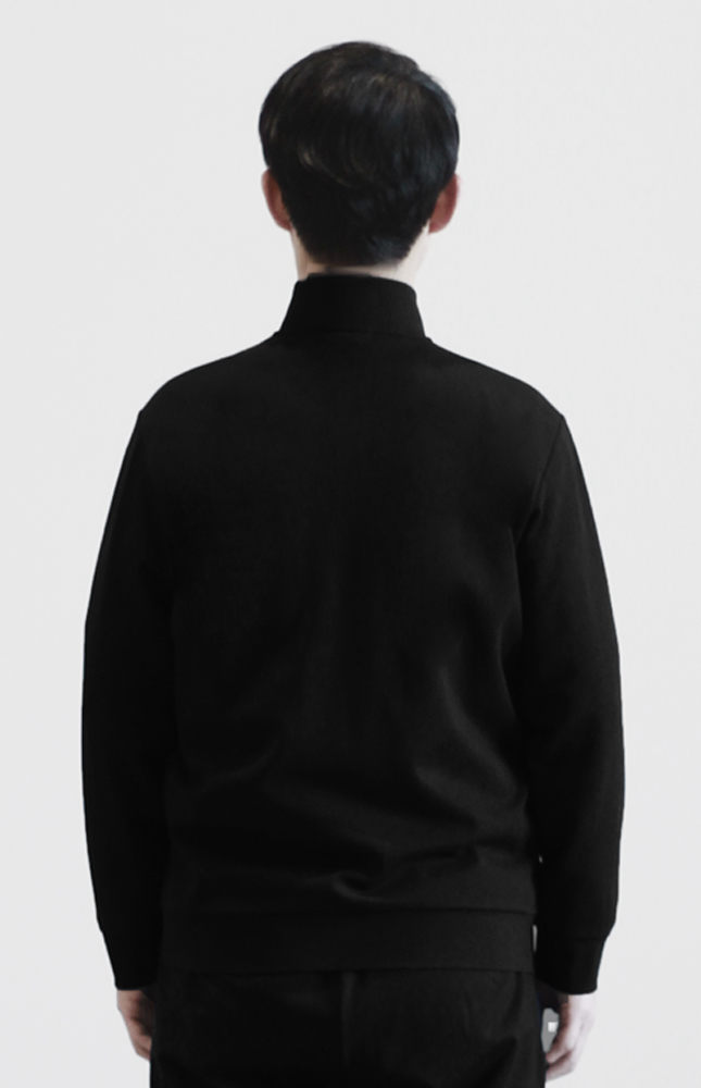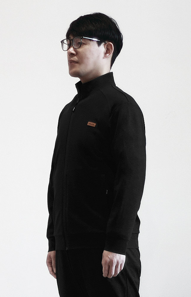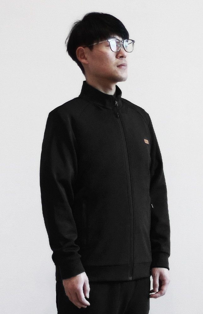 定制运动装-黑色62%粘胶锦纶混纺(前肩分割)高弹春夏立领上衣