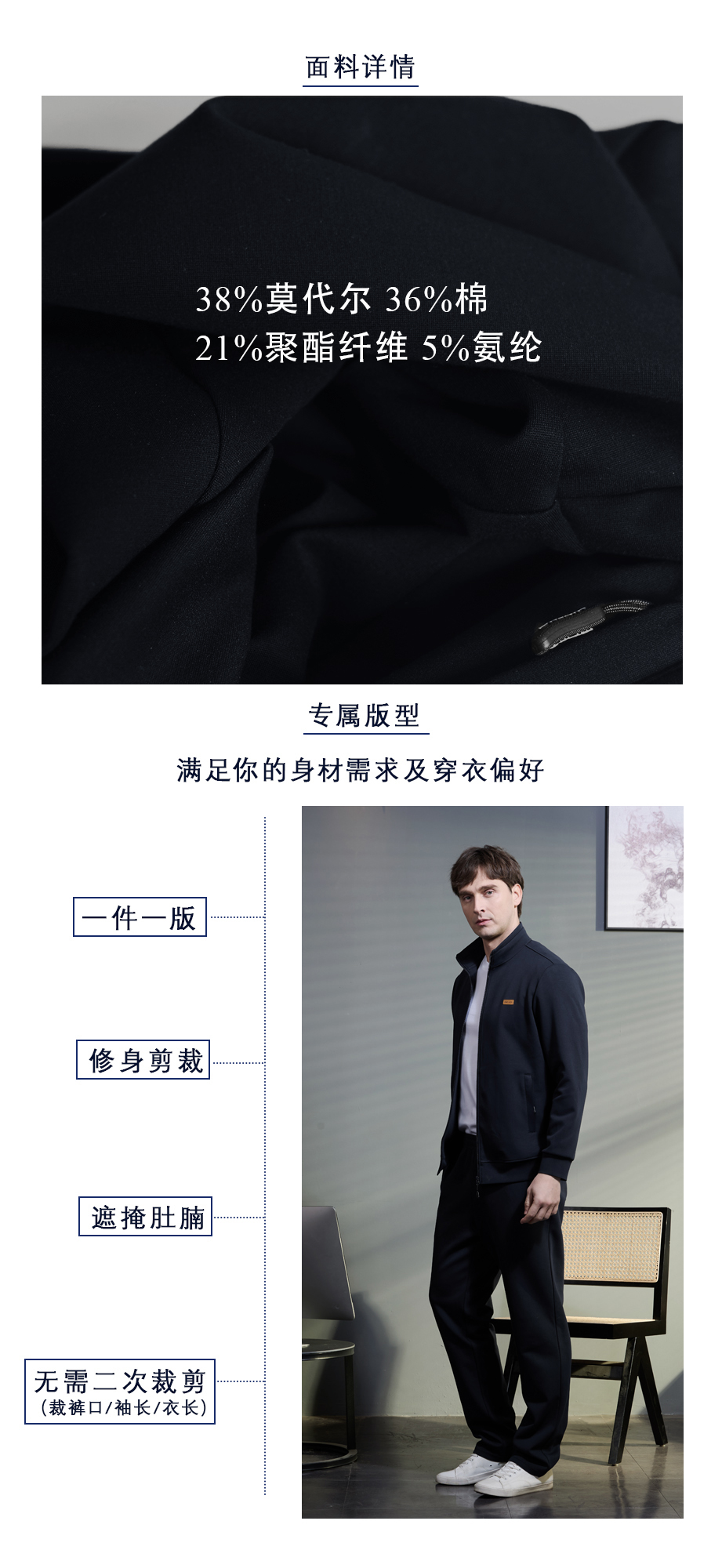 定制运动装-藏蓝38%莫代尔棉混纺束口春夏运动裤