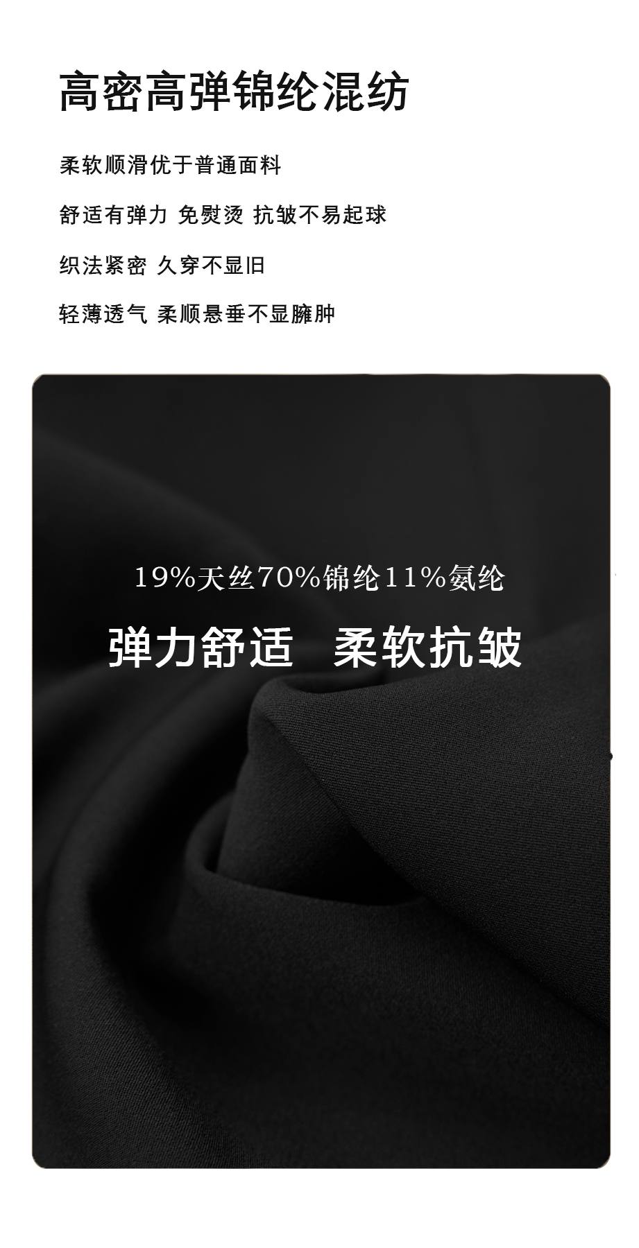 | 款名: | 定制休闲裤-黑色70%锦纶天丝混纺轻薄春夏休闲裤 | |||||