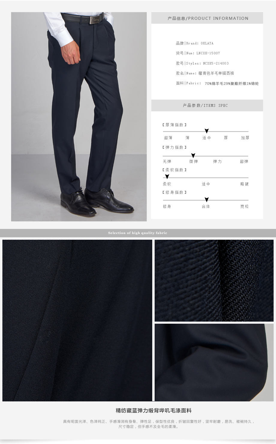您的位置:主页 >> 男装定制 >> 藏蓝色单褶羊毛混纺西裤