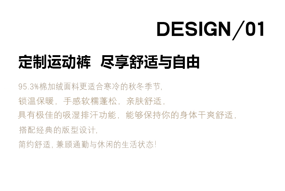 舒适利落的束口设计,利落简洁,更适合运动,做工无可挑剔。