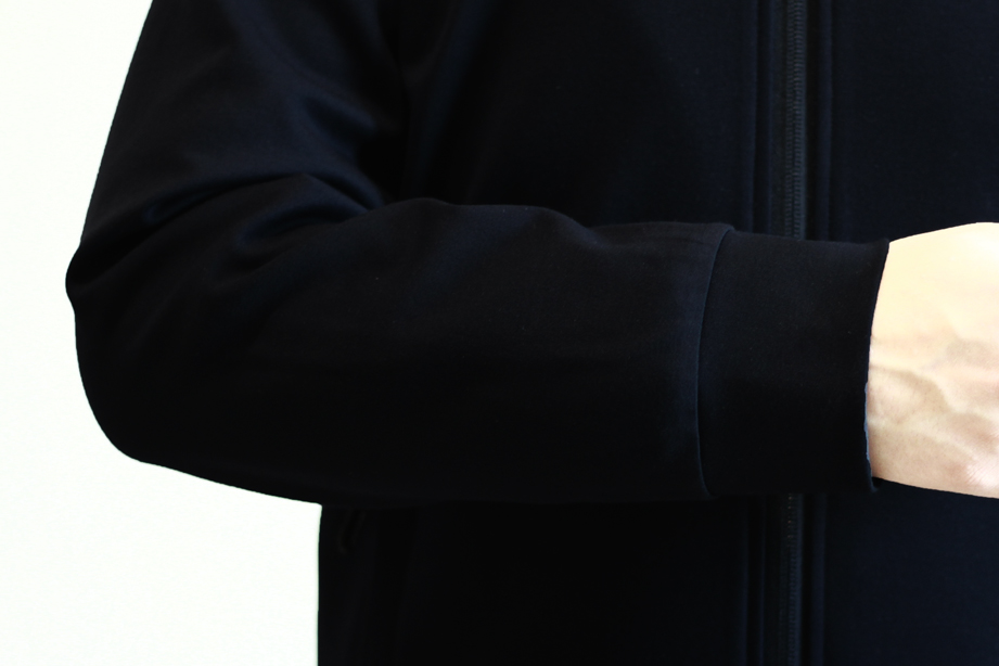 袖头使用简洁的顺色针织罗纹,舒适又有型。