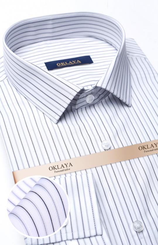 浅黛蓝条纹粘胶纤维混纺微弹小方领长袖衬衫